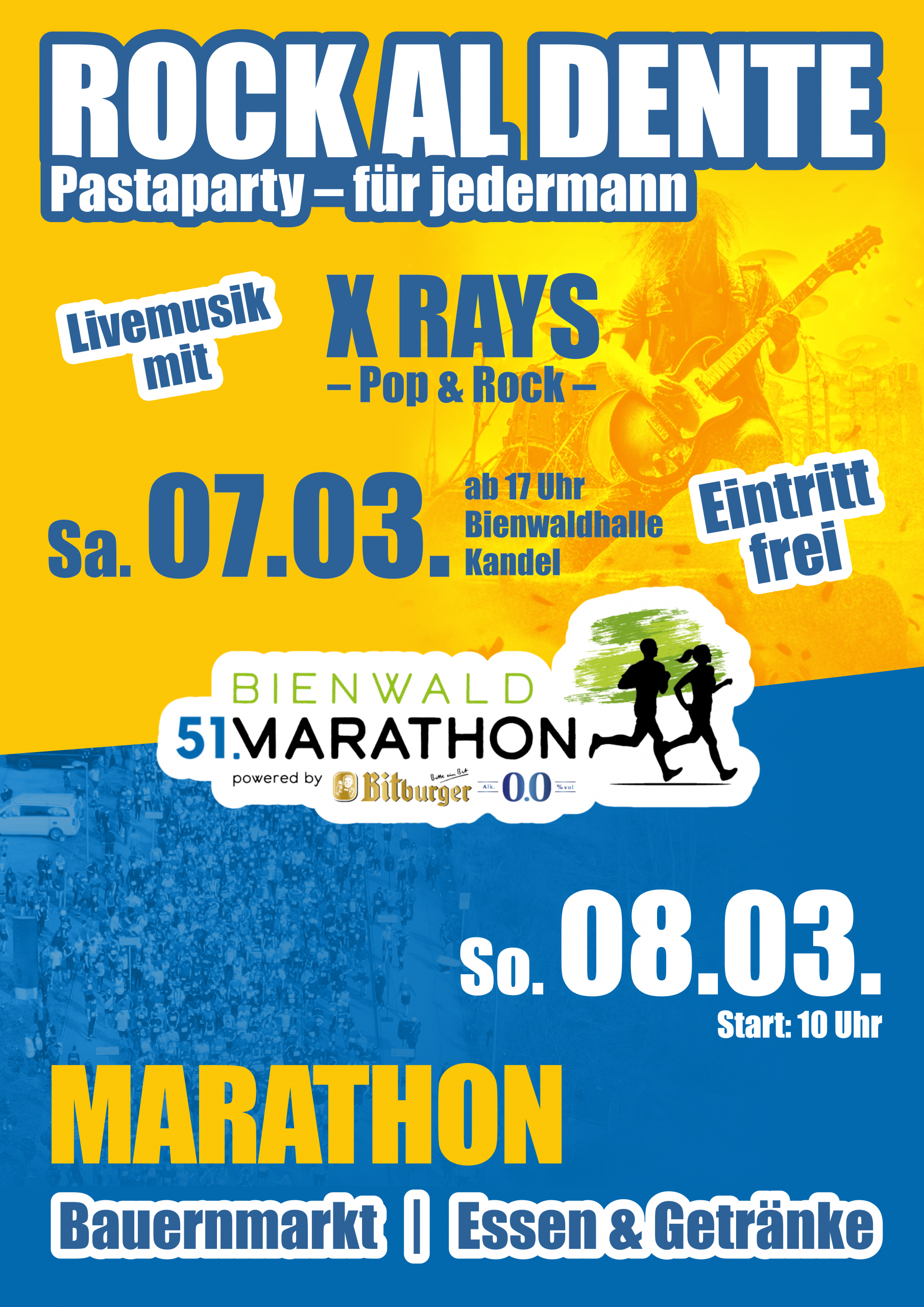 Auch 2026 werden wir wieder eine Pasta-Party mit Live Musik für euch veranstalten. Jeder Teilnehmer bekommt eine Portion gratis und der Eintritt für Läufer und Nicht Läufer ist natürlich kostenfrei.